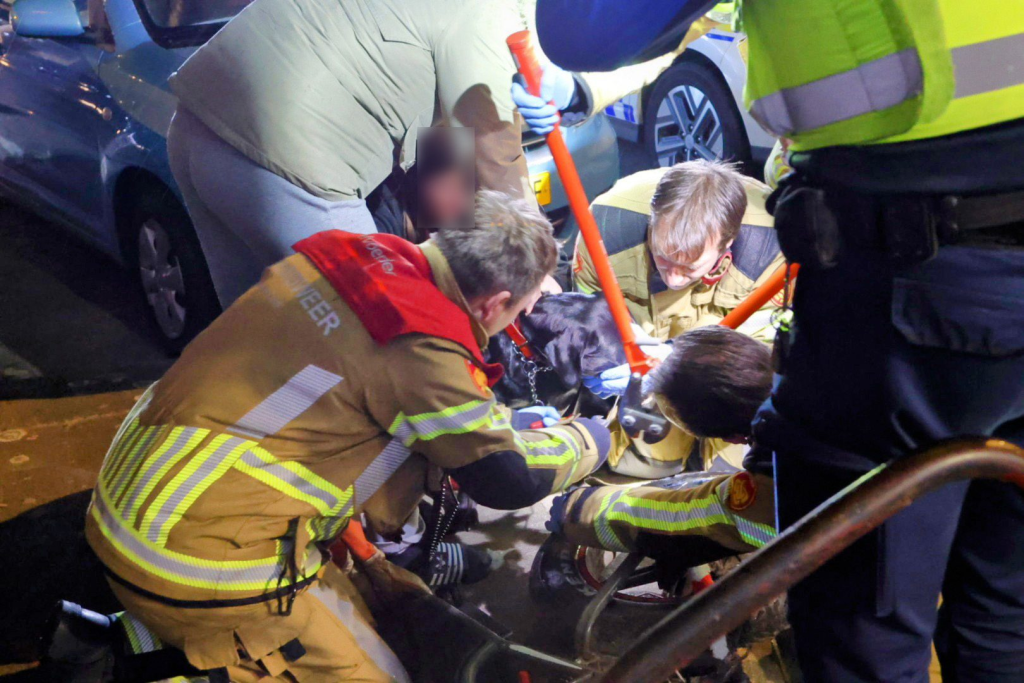 De dierenambulance heeft de hond meegenomen voor verdere behandeling. Over de ernst van het letsel is niets bekend.