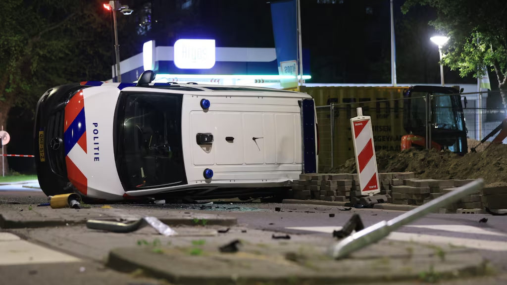 Een politiebusje is vannacht in Rozenburg op z’n kant beland na een ongeval met een personenauto. Het incident vond plaats op de kruising van de Laan van Nieuw Blankenburg met de Tienmorgenseweg. Door de klap sloeg de politiebus over de kop en kwam uiteindelijk op zijn kant tot stilstand.